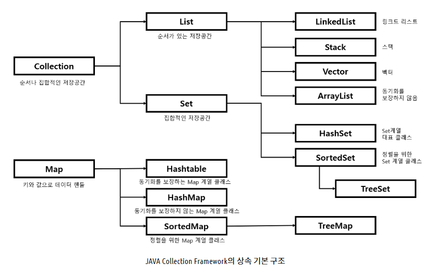 1. List, Set, Map, HashMap의 차이에 대해서 설명해주세요.